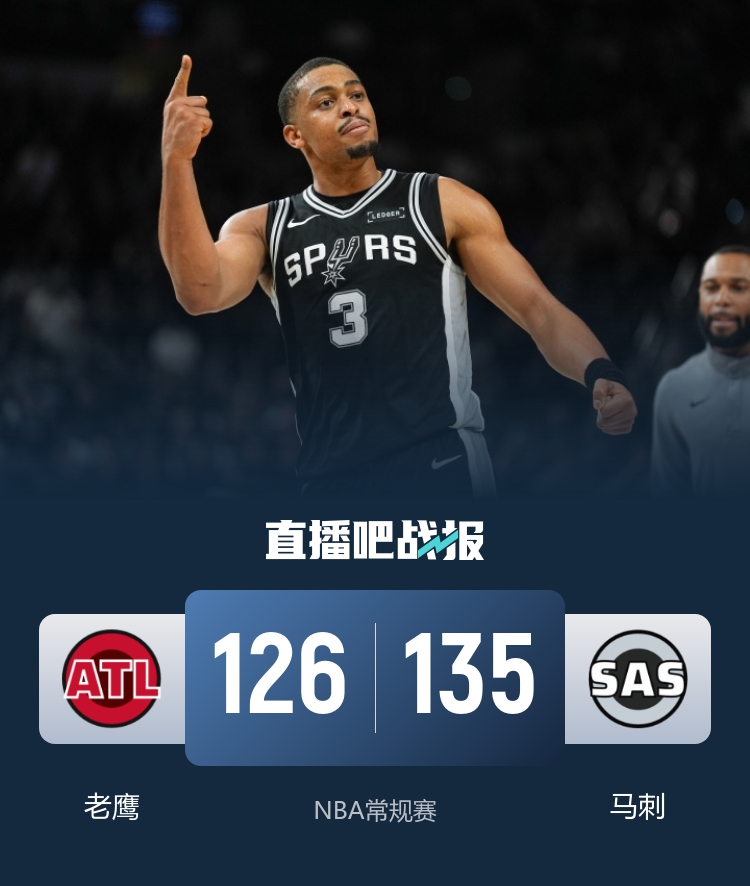 11月21日讯 NBA常规赛,马刺主场迎战老鹰。马刺10胜4负西部第5,老鹰9胜6负东部第5。