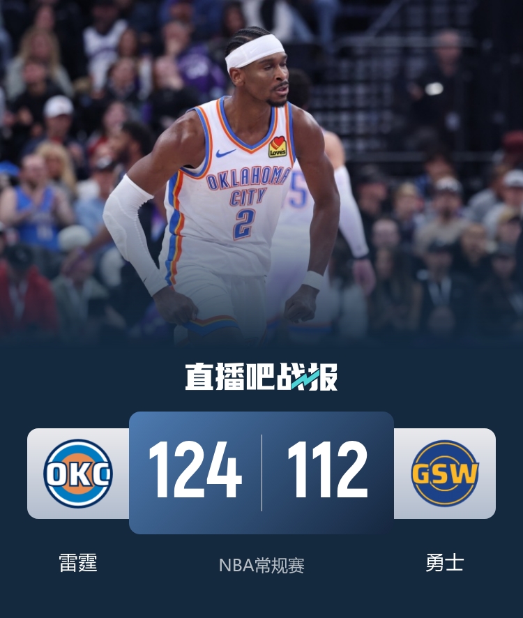 雷霆拒绝逆转胜勇士豪取13连胜!亚历山大38分 赛斯首秀14分